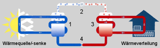 1 Verdampfen - 2 Verdichten - 3 Verflüssigen - 4 Entspannen